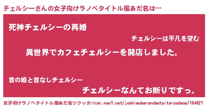 意味不明あだ名 | 『永久保存チェルシー』『自称チェルシー』 |