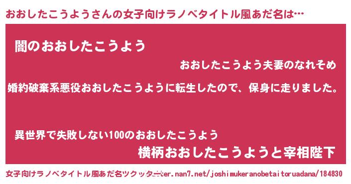 | ヘコむあだ名 | 『おおしたこうよう(笑)』『なまこ酢』 |