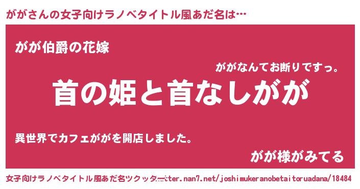 | 男性向けラノベタイトル風あだ名 | 『はたらくががさま!』 |