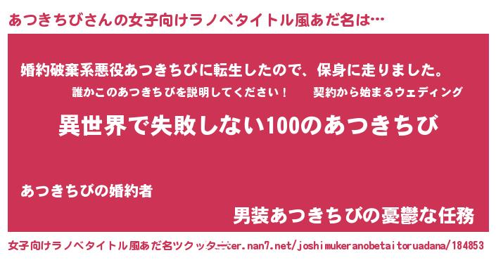 | 男性向けラノベタイトル風あだ名 | 『あつきちびという概念が存在しない退屈な世界 』 |