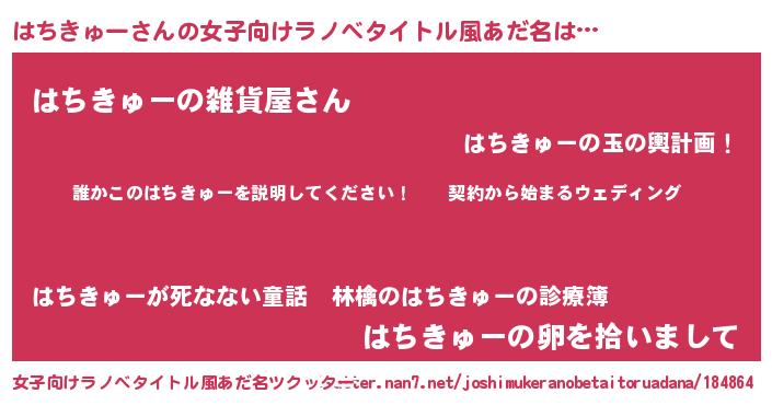 | ファンタジー風あだ名 | 『ハチフェル』『エターナルハチキューー』 |