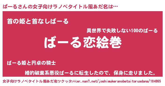 | ヒーロー風カッコイイあだ名 | 『友情の使者ばーる』『ネオバール』 |