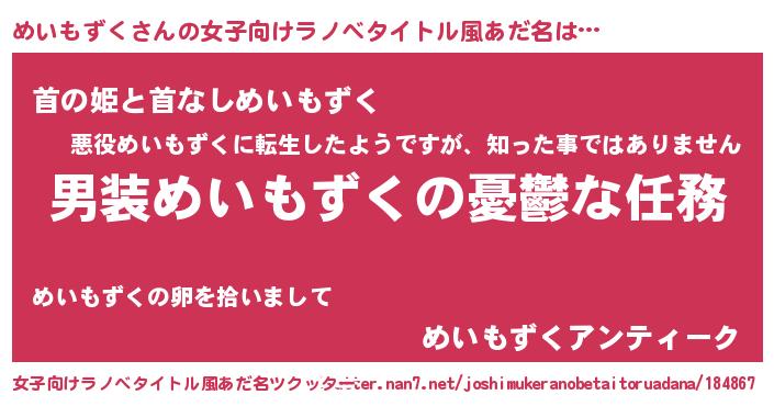 | 男性向けラノベタイトル風あだ名 | 『冴えないめいもずくの育てかた』 |