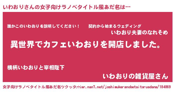 | 男性向けラノベタイトル風あだ名 | 『誰もが恐れるあのいわおりが、ぼくの専属メイドになるようです。』 |