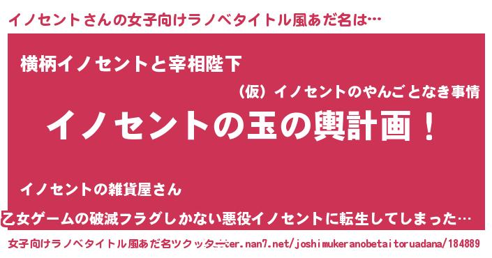 | 胡散臭い通販商品みたいなあだ名 | 『あなたにだけ特別に提供する100年もののヴィンテージワイン…その名も「イノセント」』 |