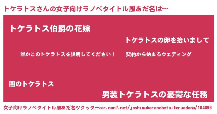 | 男性向けラノベタイトル風あだ名 | 『トケラトスアートオンライン』 |