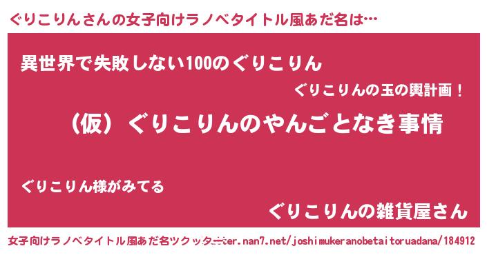 | 男性向けラノベタイトル風あだ名 | 『ぐりこりんの憂鬱』 |