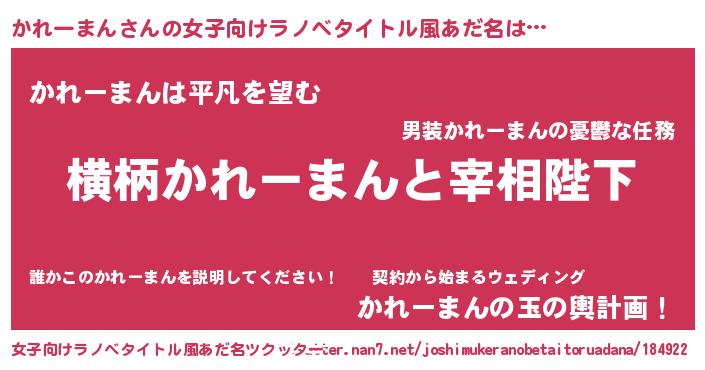 | 男性向けラノベタイトル風あだ名 | 『かれーまんに滅ぼされるだけの簡単なお仕事です』 |