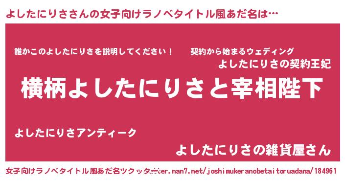 | 男性向けラノベタイトル風あだ名 | 『よしたにりさに滅ぼされるだけの簡単なお仕事です』 |