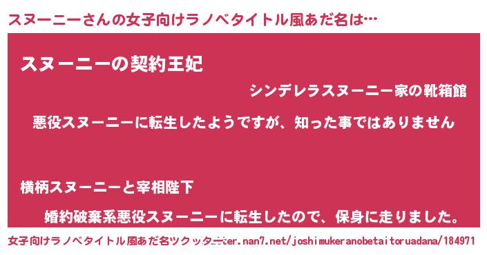 | 胡散臭い通販商品みたいなあだ名 | 『あなたにだけ特別に提供する100年もののヴィンテージワイン…その名も「スヌーニー」』 |
