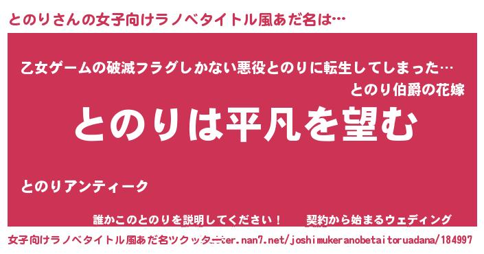 | 胡散臭い通販商品みたいなあだ名 | 『信頼と実績のサプリメント…その名も「とのり」』 |