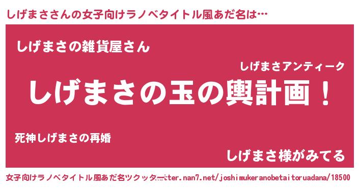 | 男性向けラノベタイトル風あだ名 | 『転生したらしげまさだった件』 |