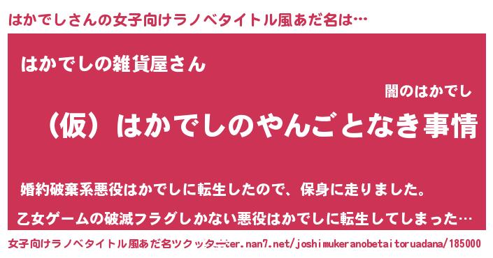 | 男性向けラノベタイトル風あだ名 | 『はかでしの憂鬱』『ハカデシスレイヤー』 |