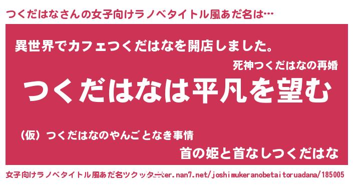| 意味不明あだ名 | 『とにかく怪しいつくだはな』 |