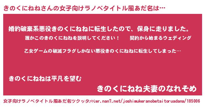 | 男性向けラノベタイトル風あだ名 | 『魔弾の王ときのくにねね』 |