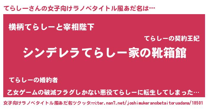 | 男性向けラノベタイトル風あだ名 | 『冴えないてらしーの育てかた』 |