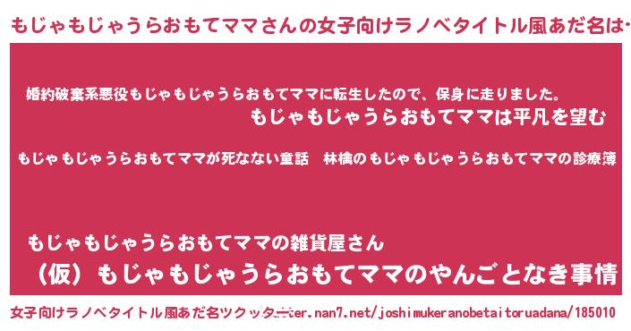 | 意味不明あだ名 | 『住所不定無職もじゃもじゃうらおもてママ(62歳)』 |