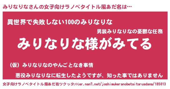 | 意味不明あだ名 | 『とにかく怪しいみりなりな』 |