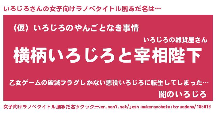 | 男性向けラノベタイトル風あだ名 | 『いろじろに滅ぼされるだけの簡単なお仕事です』 |
