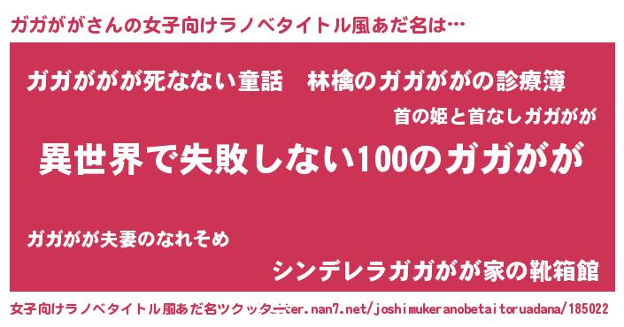 | ヘコむあだ名 | 『ガガがが(小並感)』『ガガふぇ~』 |