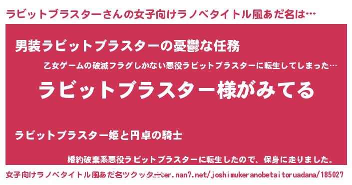| 男性向けラノベタイトル風あだ名 | 『ラビットブラスターの嫁は女の子じゃないと思った?』 |