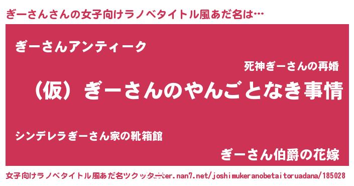 | 男性向けラノベタイトル風あだ名 | 『ぎーさんの憂鬱』『緋弾のギーサン』 |