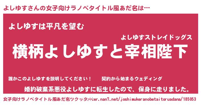 | 意味不明あだ名 | 『とにかく怪しいよしゆす』 |