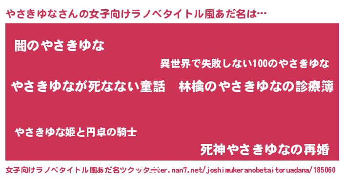 | 料理風あだ名 | 『やさきゆなのカルパッチョ風』 |
