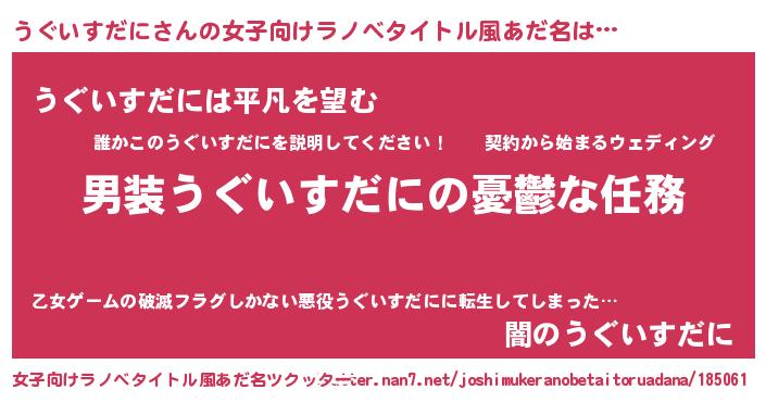| 男性向けラノベタイトル風あだ名 | 『冴えないうぐいすだにの育てかた』 |