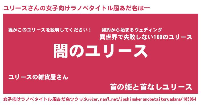 | ヒーロー風カッコイイあだ名 | 『最強戦士ユリース』『スーパーユリース』 |
