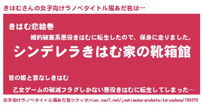 | 男性向けラノベタイトル風あだ名 | 『緋弾のキハム』『はたらくきはむさま!』 |