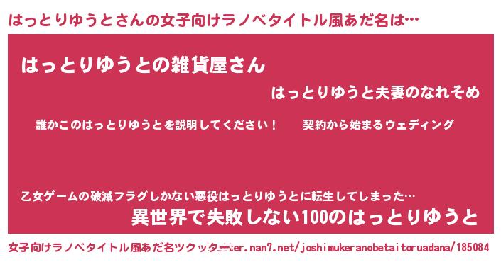 | 胡散臭い通販商品みたいなあだ名 | 『億万長者になれる霊験あらたかなお札…その名も「はっとりゆうと」』 |