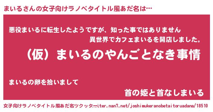 | 男性向けラノベタイトル風あだ名 | 『まいるの憂鬱』『はたらくまいるさま!』 |
