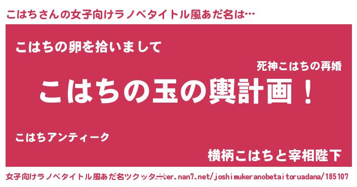 | 意味不明あだ名 | 『もやし科こはち属』『自称こはち』 |