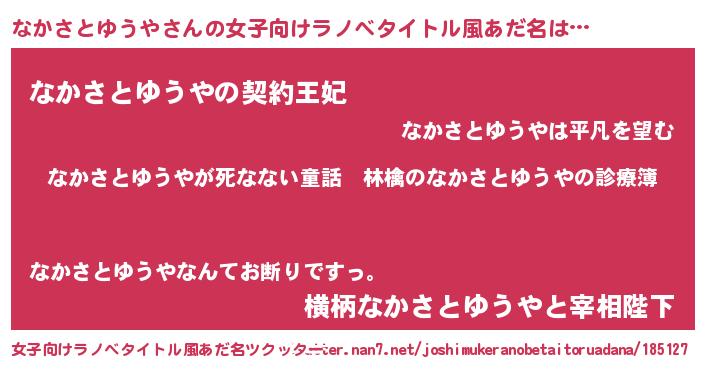 | 男性向けラノベタイトル風あだ名 | 『魔弾の王となかさとゆうや』 |
