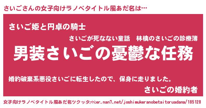| ヒーロー風カッコイイあだ名 | 『スーパーサイゴ』『ウルトラさいごマン』 |