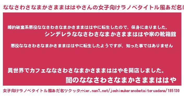 | 意味不明あだ名 | 『住所不定無職ななさわさなまかさままははや(8歳)』 |