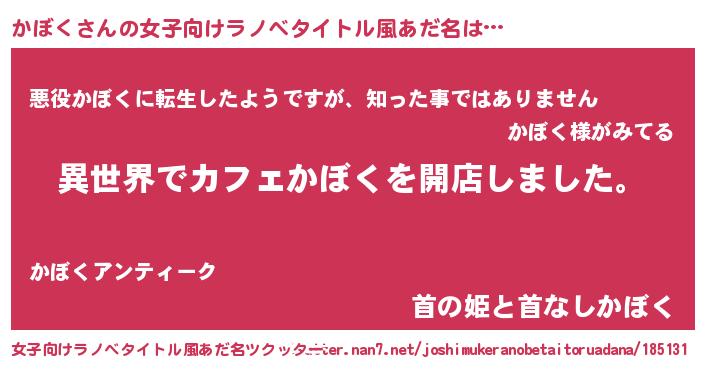 | ヘコむあだ名 | 『かぼく(小並感)』『かぼ太郎』 |