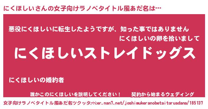 | 胡散臭い通販商品みたいなあだ名 | 『芸能人もオススメする高麗人参…その名も「にくほしい」』 |