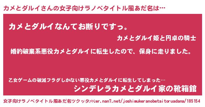 | 男性向けラノベタイトル風あだ名 | 『転生したらカメとダルイだった件』 |