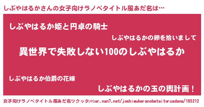 | 肩書あだ名 | 『しぶやはるか校長』『しぶやはるか中将』 |
