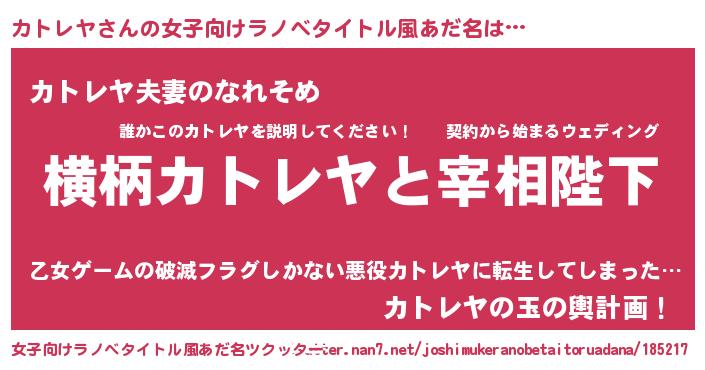 | ヘコむあだ名 | 『カトもー』『つくし』『カトを』 |