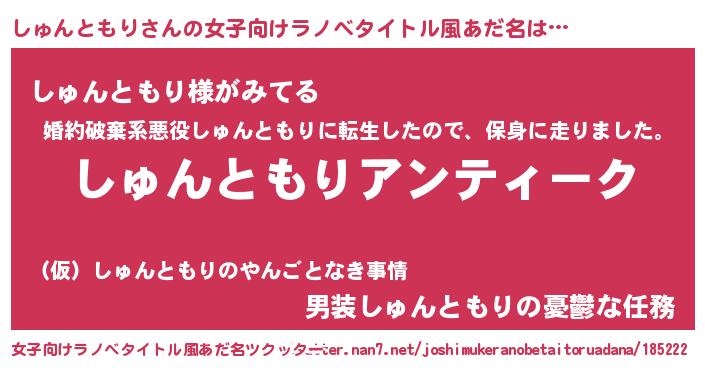 | 男性向けラノベタイトル風あだ名 | 『魔法科高校のしゅんともり』 |