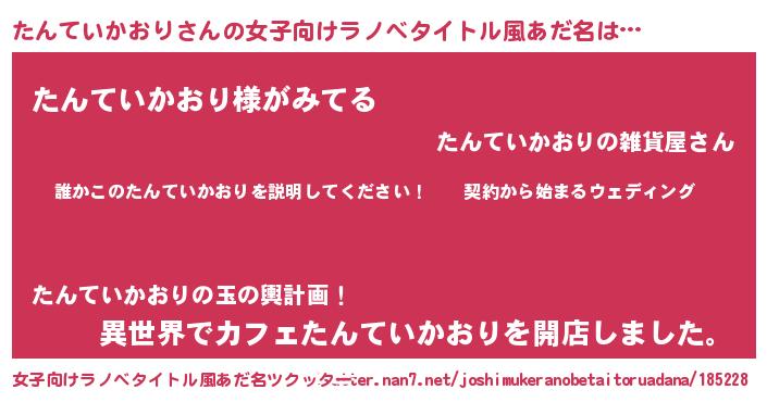 | 男性向けラノベタイトル風あだ名 | 『タンテイカオリアートオンライン』 |