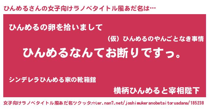 | 意味不明あだ名 | 『自称ひんめる』『ペロリンひんめる』 |