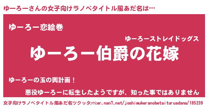 | 男性向けラノベタイトル風あだ名 | 『やはりゆーろーの青春ラブコメはまちがっている 』 |