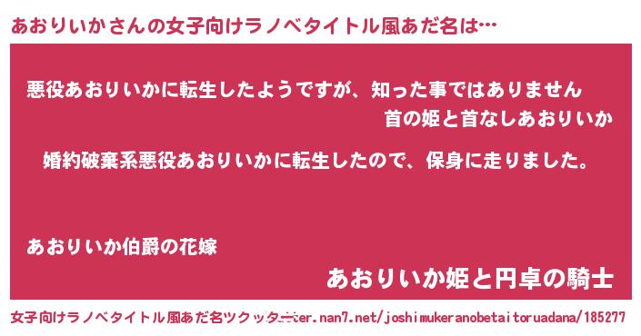 | 恥ずかしいあだ名 | 『プリティーあおりいか』『あおっちょ』 |