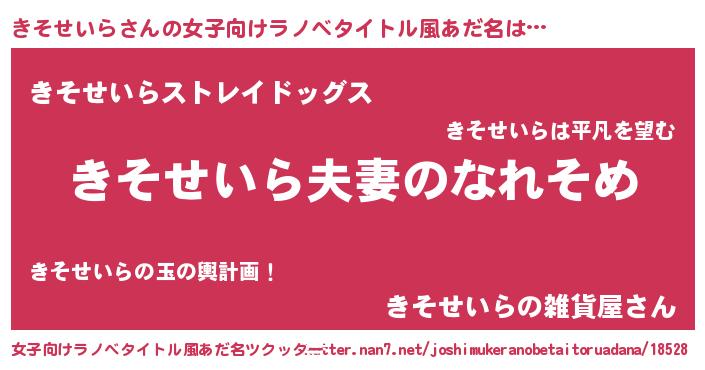 | ヒーロー風カッコイイあだ名 | 『正義の使者きそせいら』『魔戒騎士キソ』 |