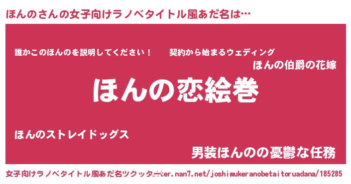 | 男性向けラノベタイトル風あだ名 | 『おまえをオタクにしてやるから、俺をほんのにしてくれ! 』 |