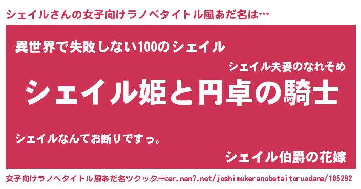 | 胡散臭い通販商品みたいなあだ名 | 『モテモテ間違いなし水晶球…その名も「シェイル」』 |